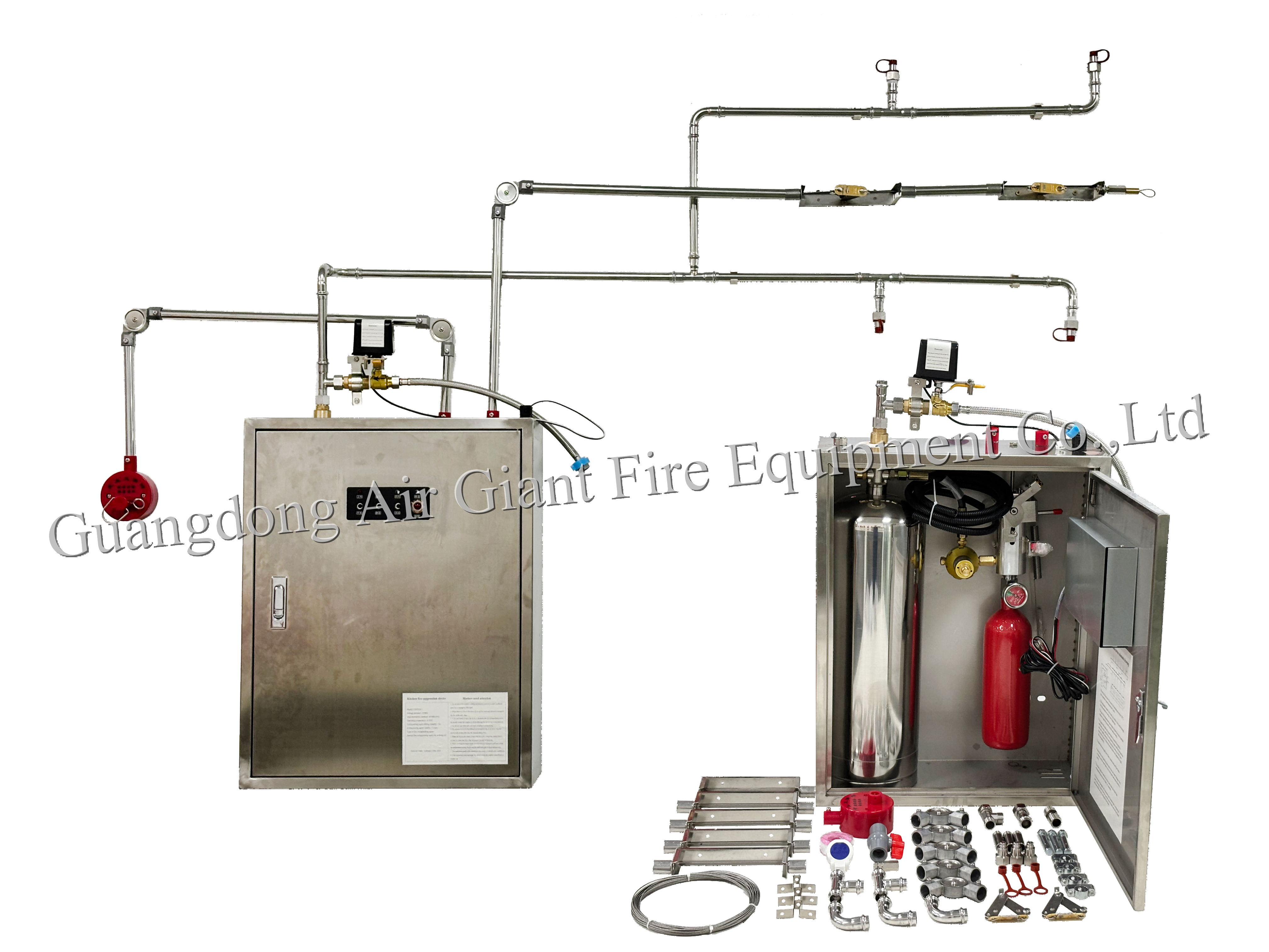 Thiết bị chữa cháy cho thiết bị nhà bếp là một bộ hoàn chỉnh các thiết bị được lắp đặt trong môi trường có độ ẩm và nhiệt độ cao như nhà bếp công nghiệp, nhà bếp thương mại và nhà bếp dân dụng, bao gồm: